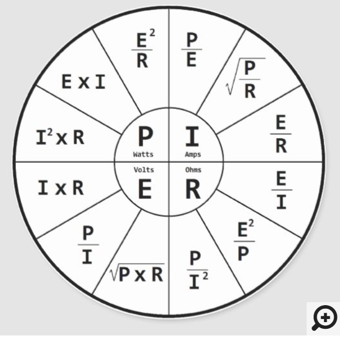 E x I = P (Volts x Courant = Puissance)